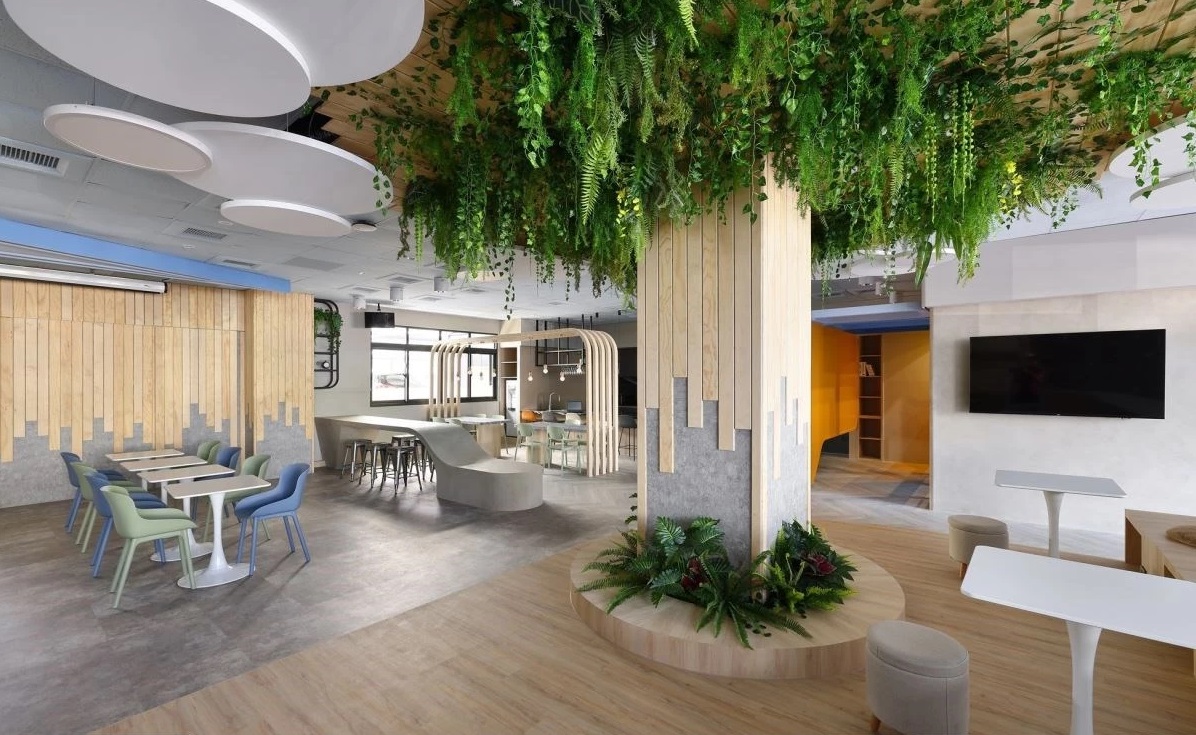 這間改造的600平商業(yè)辦公室空間,是致力于發(fā)展太陽(yáng)能源的——能源類的有限公司。因應(yīng)永續(xù)利用的綠能精神,全室選用大面積的淺木質(zhì)調(diào),搭佐天然石材及綠意植栽,詮釋身處大自然的放松氣息,而格局規(guī)劃上,跳脫制式的辦公室設(shè)定,以開放式手法,編排不同型態(tài)的工作環(huán)境,并融合攀巖抱石、攀爬網(wǎng),打造能拋開緊繃情緒的工作場(chǎng)域。