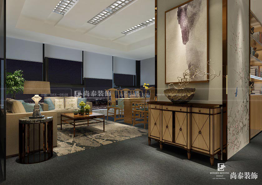 基于飛毛腿20年的實(shí)力影響,使其沉淀了豐厚的文化底蘊(yùn),尚泰裝飾項(xiàng)目團(tuán)隊(duì)依照此突出特點(diǎn),在風(fēng)格上定為新中式經(jīng)典風(fēng)格,此舉恰巧與客戶(hù)一拍即合。本文著重從老總辦公室為要點(diǎn)進(jìn)行設(shè)計(jì)風(fēng)格的闡述。