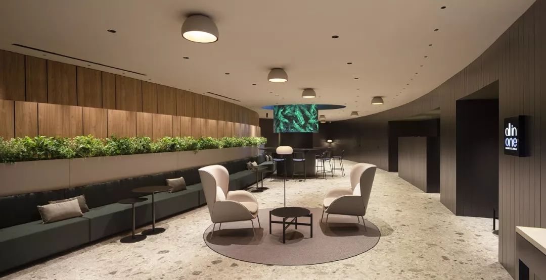只有前面那些還不夠!還有室內(nèi)多種多樣吊頂休息、會(huì)客空間也要運(yùn)用數(shù)字化媒體綠化,在客戶和員工洽談的時(shí)候,可以擁有更棒的空間體驗(yàn)感,橢圓形的大型垂直屏幕、“蘑菇”休息亭,將自然概念貫徹到底。
