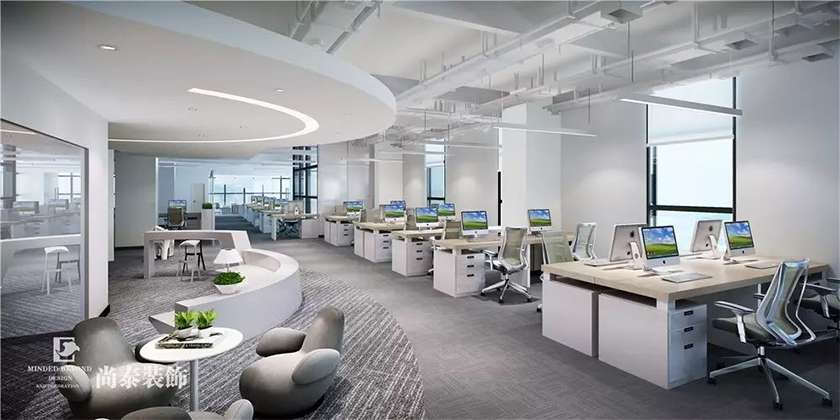 ?本案為前海速貸通互聯(lián)網(wǎng)金融服務(wù)(深圳)有限公司(簡(jiǎn)稱(chēng)“速貸通”)的新辦公室設(shè)計(jì),該企業(yè)是一家依托互聯(lián)網(wǎng)等技術(shù)手段,面向中小型企業(yè)及個(gè)人提供金融中介服務(wù)。這次深圳辦公室裝修公司-尚泰裝飾為其打造了一個(gè)以白色為主色調(diào),以圓弧造型搭配燈光,配備員工開(kāi)放辦公區(qū)、休閑洽談區(qū),健身區(qū),管理層辦公室等功能區(qū)域,空間職能上的巧妙轉(zhuǎn)換,營(yíng)造出一種高效的商務(wù)辦公氛圍:一種正式的現(xiàn)代新型辦公設(shè)計(jì)概念。