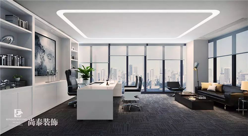 高端的黑色皮椅,木質(zhì)茶幾,墻上的一幅水墨畫(huà)凸顯品位,經(jīng)理辦公室擁享優(yōu)質(zhì)的風(fēng)景和光線,極簡(jiǎn)、實(shí)干、商務(wù)范十足。